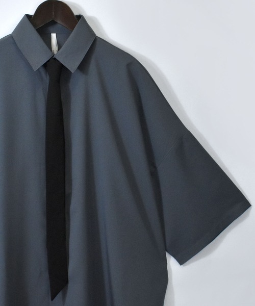 PEストレッチネクタイビッグシャツ《デザイン》着心地の良いネクタイ付きシャツが登場!程よい厚みとハリのある生地を取り入れ、バランスの取れた立体感を表現。肩を絶妙にドロップさせ、こなれたルーズ感とナチュラルさを表現できるシルエットに。ワイドシルエットながら計算し尽くされたスタイリッシュなデザインにも注目です。カラーバリエーションもベーシックに着こなしやすい定番カラーが特徴。《スタイリング》ネクタイ付きでスタイリッシュな着こなしがおすすめです。ネクタイは取り外しできるので、様々なシーンで使えます。ワイドパンツやデニムパンツ、スキニーやシェフパンツなど様々なスタイルにマッチします。※男女問わずユニセックスでお使い頂けるので、ご自身用は勿論、プレゼントにもオススメです。≪お買い物をお楽しみいただくために≫▼商品のお気に入り登録完売カラーの再入荷通知や、ラスト1点、セールの通知をお知らせいたします。▼ブランドお気に入り登録新商品や再入荷など、いち早くブランドの情報を受け取ることができます。