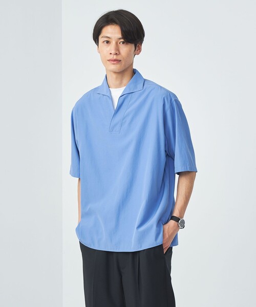 程よく抜け感のあるスキッパーシャツ ■デザイン ゆったりとしたシルエットのプルオーバーシャツです。 襟元は浅めのスキッパー仕様で、首回りを涼しげのある雰囲気に。 わずかに前後差のある着丈もデザインポイントです。 ■素材 トリアセ×コットン素材をを使用。 光沢感のある上品さとナチュラルな雰囲気を兼ね備えた生地です。 ■コーディネート インナーを首元や着丈から覗かせたレイヤードスタイルがおすすめ。 インナーのTシャツには白合わせはもちろん、モダンな雰囲気を演出する同系色合わせや、ボーダー柄でアクセントをつけた遊び心のある組み合わせもいい感じです。 ボトムスにはゆったりとしたシルエットのパンツが相性◎。 キレイメからカジュアルまで、幅広いテイストに合わせやすい一枚です。 ============================ 裏地:なし 透け感:なし 伸縮:なし 光沢感:あり ============================ 【注意事項】 ※商品を使用前に、タグ等に記載されている「取り扱い上の注意書き」、「洗濯表示」を必ずご確認ください。 ※商品画像は、光の当たり具合やパソコンなどの閲覧環境により、実際の色味と異なって見える場合がございます。あらかじめご了承ください。 ※商品の色味の目安は、商品単体の画像をご参照ください。 店舗へお問い合わせの際は、全国のgreen label relaxing各店舗まで下記の品名/品番をお申し付けください。 品名:CSM トリアセコットン スキッパーPO 品番:32161081768