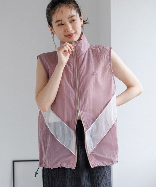 ダブルジップでスタイリングの幅が広がる◎ トレンドコーデに欠かせない、春夏の主役アイテム! ■おすすめスタイリング ☆今年っぽいスポーツMIXスタイルには・・・ コットンレーススカートと合わせて、カジュアルダウンさせたスタイリングがおすすめ! キャミワンピ×デニムのレイヤードスタイルにさらっと羽織るコーデも可愛い◎ ☆ベーシックな着こなしには・・・ デニム×キャップで合わせてシンプルに!デイリー使いしやすいのも嬉しいポイント! Tシャツを仕込み、裾を絞るとトレンドライクに◎ ■ポイント 今年らしく、羽織るだけで鮮度のあるコーデが完成するナイロンベスト。 ボディーは配色切り替え×ワンポイント刺繍のシンプルなデザインで、着回しやすいアイテムです! 身幅を広くとったビッグシルエットにすることで、トレンドのルーズな印象にもぴったり。 程よいシャリ感と柔らかさを持ち合わせた、シアーナイロン素材を使用し、トレンドライクな雰囲気に◎ Wジップ仕様で、好みのアレンジが効くのも嬉しいポイント! ノースリでのヘルシーな着こなしはもちろん、Tシャツやシャツをレイヤリングすればロングシーズン着用可能! 裾部分には、ドローコードを仕込み絞ればバルーンシルエットに変化し2WAY感覚で着こなせます! ■素材 軽く、シャカシャカとした生地感が特徴のシアーナイロン素材。 落ち着いた色味の3色展開で、好みの雰囲気で着こなしていただけます!