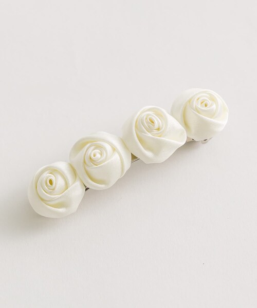 バレエコアコーデに欠かせないローズアイテム■デザイン・4つ並んだローズは存在感があり、つけるだけで簡単に可愛いヘアが完成します。・上品なサテン生地を使用しているので、デイリーだけではなくお呼ばれのシーンにもご使用いただけます。・ちょっとしたギフトにもおすすめのアイテムです。■カラー・アイボリー/ブラックの2色展開 お取り扱い上の注意※キャンペーンやフェアにより価格が変動する場合がございます。※サンプルで撮影している為、実際の商品と若干仕様が異なる場合がございます。≪返品・交換について≫・着用後、洗濯後の返品・交換は致しかねます。・商品到着後、着用前に商品状態のご確認をお願い致します。登録のおすすめ【気になるアイテムをお気に入り登録】・お気に入り登録した商品はメニューの「♡お気に入り」ボタンから、一覧表示することが出来ます。・完売商品の再入荷やラスト1点の通知、セールの通知を受け取ることが出来ます。パソコン(iPad)の場合・・・「カートに入れる」ボタン横に表示されている「♡」をクリックしてください。スマートフォンの場合・・・商品画像右上に表示されている「♡」をタップしてください。【PALCLOSETアプリのブランドフォロー】・新商品やお得な情報をいち早くcheckする事が出来ます。・スタッフのコーディネートをお楽しみ頂けます。 ※着用、お取り扱いの際は、商品についている品質表示とアテンションタグを必ずご確認下さい。