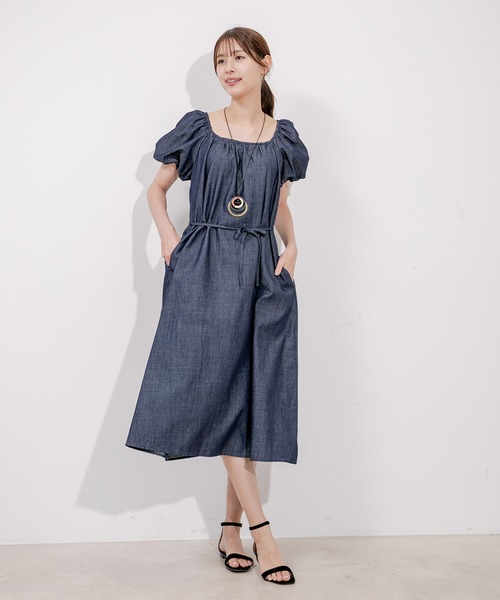 【デザイン・シルエット】 存在感たっぷりな主役ワンピース。 スカートのラインがセミフレアのシルエットになっているのでカジュアルすぎずにすっきりと着こなしが可能。 ほんのりパフスリーブが女性らしい印象◎ 共布の細ベルトを締めることで女性らしさが引き立つフィット&フレアシルエット。 【素材感】 柔らかいデニム生地 【カラー】 42 コン 【スタイリングポイント】 デイリーにはもちろん、オフィスや休日のお出かけスタイルなどにも活躍してくれる1着。 旬なアイテムをプラスして、こなれ感のあるスタイリングに。 スニーカーに合わせたカジュアルなスタイリングはもちろん、ヒールサンダルなどレディなコーデにも◎ 裏地:なし 光沢感:なし 透け感:なし ポケット:なし 伸縮性:なし 生地の厚さ:普通 ボタン:なし その他仕様:なし 季節:春、夏 ※撮影時の光、お使いのモニター環境によって色の見え方が違う場合がございます。予めご了承ください。 モデル身長:168cm 着用サイズ:F