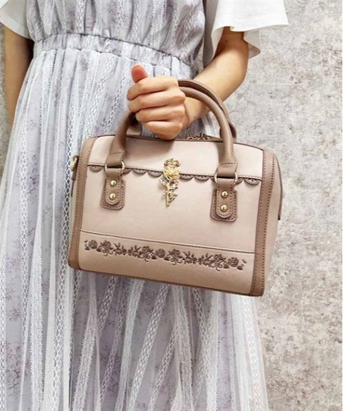 【アイテム説明】 薔薇モチーフの刺繍と揺れるチャームが華やかなボストンバッグです。 【デザイン】 コロンとしたフォルムに配色デザインが目を惹きます。 配色と刺繍の色味を揃え、統一感を出しているのもポイントです。 繊細な薔薇のチャームは、axes femmeオリジナルのデザインです。 小ぶりながらもマチが広く奥行きがあるので、見た目以上に大容量◎ 付属のベルトを使って、ショルダーバッグとしても使用できます。 ▽ axes femme * アクシーズファム 【Concept】 axes femmeのお洋服であなたのライフスタイルに ほんの少しだけ彩る花が咲きますように。 ブランドを通して、彩る花たちが、 人と人、お客様や作り手たちの想いが世界中に繋がっていきますように。 ベル・エポック(フランスの古き良き時代)にパリジェンヌたちが愛したファッションや文化にルーツをおき、 独自のフェミニンスタイルを楽しむブランド ********************** .。.:? お気に入り登録のおすすめ ?:.。. ∇気になるアイテムを登録∇ ハートをクリックしてお気に入りに登録すると 完売カラーの再入荷やラスト1点の通知、セールの通知を受けとることができます。 ∇ブランドを登録∇ 新商品や再入荷、セール通知など、いち早くブランドの情報を受けとることができます。 是非ご利用頂き、お買い物をお楽しみ下さい。 .。.:? 商品について ?:.。. ・サイト上のカラー名と、お届け商品に記載されているカラー名が異なる場合がございます。 ・商品の色味は、撮影場所や光のあたり具合、お客様のお使いのPCのモニター環境などにより色味が違って見える場合がございます。 予めご了承の上ご注文下さい。 .。.:? 返品・キャンセルについて ?:.。. ・着用、洗濯後の返品は致かねます。 ・商品到着後、着用前に商品を確認して頂きますようお願い致します。
