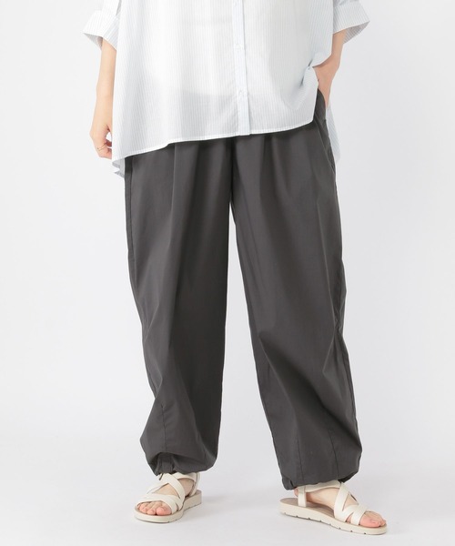 ーーー 特殊なヴィンテージ加工を施したパラシュートパンツ。 生地の程よいハリ感と軽やかさが特徴。 ウエストにはギャザーがたっぷりと入っており、今年らしいバルーンシルエットに♪ 裾はストッパー付きなのでボリュームの調節ができ、カジュアルに絞ったりと様々なスタイリングをお楽しみいただけます! ウエストはゴム仕様でイージーに着用可能◎ 動きやすいのでデイリー使いにおすすめのアイテムです。 ーーー シンプルなTシャツはもちろん、甘めのブラウスでのスタイリングもおすすめ◎ レジャーシーンや運動会など、イベントにもぴったりなパンツです♪
