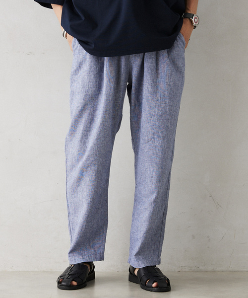上質なリネン原料から作成した〈European Flax〉を使用したイージースラックスが新登場! ヨーロッパリネン協会から認定された素材だけが使える〈ヨーロピアンフラックス〉を使った、イージースラックス。 ウエスト周りはゆったりしたイージー仕様で、ゆるめにテーパードがかかっているので、スッキリとした印象です。 ウエストは総ゴムにスピンドルでベルトレスのリラックス感ある履き心地に仕上げてます。 上質なリネン混の素材が、上品で快適に履けるイージースラックスです。 ※セットアップで着用可能の同素材アイテムもオススメです! 品番:「24051464013020 」 商品名:「European Flax / ヨーロピアンフラックス オープンカラー半袖シャツ」 ********************** 裏地:なし 伸縮性:なし 光沢感:ややあり 生地の厚さ:普通 ********************** 【スタッフ着用コメント】 《スタッフH》 身長:170cm/体重:60kg/体型:中肉中背/普段サイズ:M/着用サイズ:L サイズ感: 股上ゆったりした楽な履き心地。 素材感:リネンとコットン混合の丁度良い厚さです。 着心地:軽くて涼しい履き心地です。 ********************** 《画像についてのご注意》 ※照明の関係により、実際よりも色味が違って見える場合があります。 またパソコン・スマートフォンなどの環境により、若干製品と画像のカラーが異なる場合もございます。 ※商品の色味は、商品アップ画像をご参照ください。 《商品のお気に入り登録について》 「カートに入れる」または「予約する」右側のハートマークを押していただくと、 再入荷、残り1点、セールなどの通知を受け取ることが出来ます。 モデルサイズ:身長:180cm 着用サイズ:L 本体:洗濯機洗い(弱)