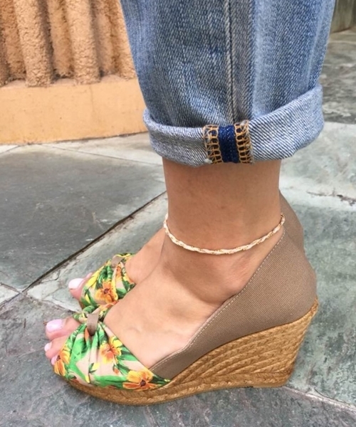 ガイモのウエッジソールパンプスが登場。 高めの9cmヒールですが抜群の安定感で普段使いにもおすすめの1足。 カラフルなカラーリングも夏のコーディネートに映えますね。 甲部分は生地が袋状になっているので足当たりが柔らかく素足にも優しい履き心地。 ソールはゴムで滑りにくいのも嬉しいポイントです。 gaimoガイモ gaimoは、靴づくりの長い伝統をもつスペイン、アルネドで1978年にスタートしたシューズブランドです。 熟練の職人がひとつひとつハンドメイドするエスパドリーユは、 デザイン性の高さと履き心地の良さに定評があり、世界中で愛され続けています。 ※店頭での撮影画像は、光の当たり具合で色味が違って見える場合があります。商品の色味は、スタジオ撮影の画像をご参照ください。