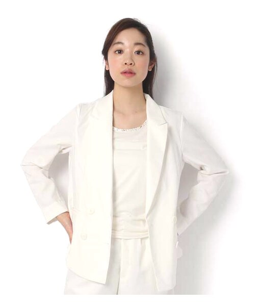 薄手デニムを使ったダブルテーラードジャケットがお目見え。ライトな色味とホワイトボタンで、ぐっと爽やかなイメージに。生地にストレッチ性をもたせているため、すっきりシルエットも無理なく着こなせます。ボーダーカットソーやセーラーパンツなどを合わせて、マリンに決めてみるのもおすすめです。
