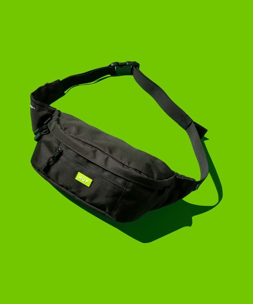 【HUF公式ショップ】 -HUF SUMMER 24 COLLECTION- ディテールにより定義され、未来のために洗練される。HUF SUMMER 2024は、新進気鋭のアーティスト、ポップカルチャーのレファレンス、過去へのオマージュをミックスした新たなクラシックを創り出し、お気に入りのアイテムと合わせることで次へ繋がる基盤としています。フレッシュなアイテム群で構成された本コレクションは、アニメーターとして名高いNam Mac a.k.a. Lord StingrayがHUFチームライダー達をフィーチャーし、アニメーションを通してクラシックなY2K時代のゲームの美学を表現しています。 〈商品の特長〉 • ポリエステルのウエストバッグ • 背面側にジップポケット1つ • HUFグリーンのラバーパッチ • ベルト調整で斜め掛けにも対応 • 500mlのペットボトルも収納可能 • 4.5Lサイズ