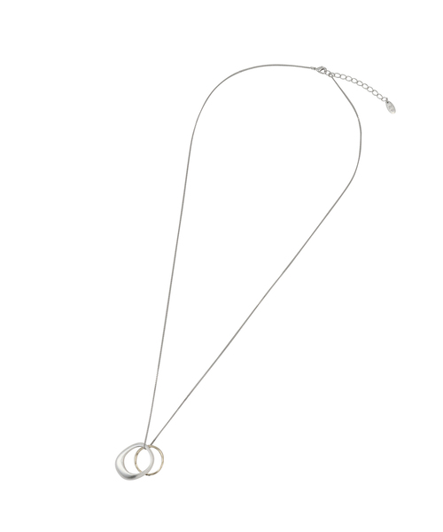軽やかなつけ心地でも存在感はしっかりと発揮。【デザイン・シルエット】・ニュアンスのあるリングを2つ組み合わせたロングペンダント。・華奢なチェーンが大人っぽさをアピール。・長さの調整が可能なアジャスト機能付き。【カラー】・ゴールド、シルバーの2色展開。【スタイリングポイント】・シンプルなボートネックカットソーのアクセントに。・小花柄のブラウスやワンピースなどにも映える一品。※撮影時の光、お使いのモニター環境によって色の見え方が違う場合がございます。