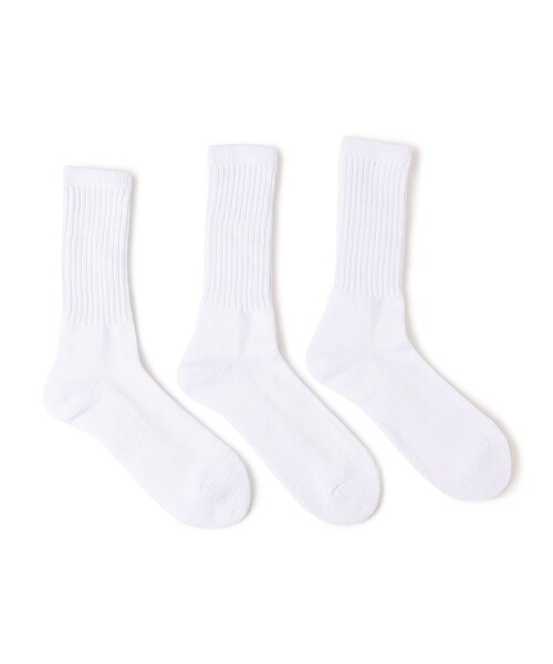 【デザイン】 程よい厚みでしっかりとした履き心地のクルー丈ソックスが3足セットで登場! シンプルな無地ホワイトのセットと、スポーティなライン入りのセットの展開。 ローファーやスニーカーだけでなくスポーツサンダルとの相性もよく、普段使いに大変オススメのアイテムです。 【注意事項】 ※末永く愛用頂く為に、アテンションタグ・洗濯ネームを必ずご確認の上、着用又はお取り扱いください。 ※撮影環境による光の当たり具合やパソコン・スマートフォンなどの閲覧環境によって、実際の色味と異なって見える場合があります。 あらかじめご了承ください。商品の色味は商品単体で撮影した画像をご参照ください。
