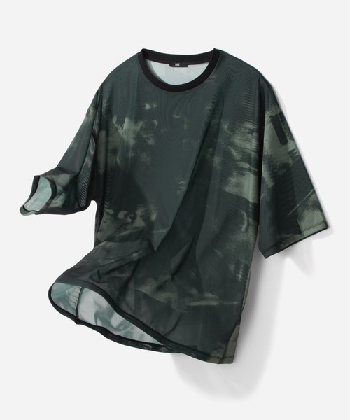 ーーー総柄のメッシュ素材を使用したデザインカットソーーーーpoint□メッシュ生地にオリジナルで作成したコラージュ柄をプリント。□透け感があるアイテムで夏に涼しく1枚で決まるアイテム。□シャツやカットソーのインナーとしてレイヤードするスタイルもおすすめです。□生地には伸縮性があり、柔らかいメッシュ素材を選んでおり、着心地もよくシワになりづらいアイテムでお手入れのしやすさも〇