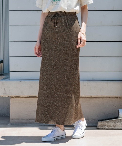 お好きな丈にCUT可能☆ 【機能/素材】 丈カット可能 アンチピリング 毛玉になりにくく長く綺麗に着られる イージーケア 洗濯後シワになりにくい ブラックのみラメ無し無地・その他カラーはラメ入り 【デザイン】 ラインを拾わないすとんとしたシルエットのナロースカート。 裾をはさみでカット出来、お好みの長さで楽しめます。 カットソーなので伸縮性があり、穿き心地楽ちんです。 ウエストのドロスト紐でサイズ調整可能。 コーディネートのポイントになる、注目のラメ入り素材に加えて、使いやすい無地ブラックもご用意。(ホワイト系8、ブラック系、グレー系5、ブラウン系9はラメ入りのカラーとなります。) 楽に体型カバーしながら、すっきりお洒落に見えるアイテムです。 【お勧めスタイリング】 ロゴプリントTや、ボリューム袖などデザインのあるカットソー合わせがおススメ。 ----------------------------- 裏地: あり 透け感: 透けない(ホワイト系8で計測しています) 伸縮性: あり(ホワイト系8で計測しています) 生地感・厚さ: 普通(ホワイト系8で計測しています) ----------------------------- 【お買い物が便利になる機能がたくさん!】 ▼商品のお気に入り登録▼ 完売アイテムの再入荷通知、ラスト1点、またクーポンやお値下げ通知をお知らせします。 ▼ブランドのお気に入り登録▼ 新商品や再入荷のお知らせ等、いち早くブランドのお得な情報を受け取ることができます。 ぜひご登録ください。