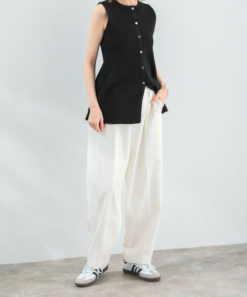 【品良く、立体的に表現したコクーンシルエットパンツ】トップスを問わず纏うだけで、トレンド感を演出するコクーンパンツ。丸みを帯びたコクーンシルエットが、ヒップから太もも周りをさり気なくカバーします。フロントタックを施すことで、きちんと感もありつつ着心地の良さを実現。しっかりした厚みで安心感があり、オールシーズン着用可能な素材感です。シアーアイテムやペプラムトップスを合わせれば、新鮮な夏スタイルが完成。混紡率は変わりますが、旧品番(RA45-24C503 コクーンパンツ)と同デザインの商品です。【2024 Spring/Summer】【24SS】※この商品は、offのみ裏地がつきます。※offのみ(バック)ポケットはフェイクです。予めご了承ください。※商品画像は、光の当たり具合やパソコンなどの閲覧環境により、実際の色味と異なって見える場合がございます。予めご了承ください。※商品の色味の目安は、商品単体の画像をご参照ください。▼お気に入り登録のおすすめ▼お気に入り登録商品は、マイページにて現在の価格情報や在庫状況の確認が可能です。お買い物リストの管理に是非ご利用下さい。素材感透け感 : なし伸縮性 : なし裏地 : あり(offのみ)光沢 : なしポケット : あり