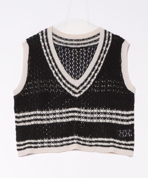 アクリル麻タッチの素材感が魅力のクロシェ編みニットベスト! これ一枚で今季らしいこなれ感を演出します。 大人女子の可愛さを引き立たせるマストアイテムです。