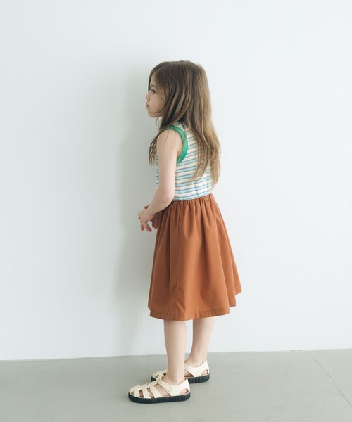 夏に嬉しい一枚完結のワンピース■デザインワッフルの先染めボーダー素材に配色リンガーでカジュアル感をプラスしたワンピース。あえてスカート部分は布帛にしてるので、カジュアルさがありながらもきちんと感も演出できるのがポイント。ウエストはゴムが入っており、少しブラウジングさせて着用すると可愛くみえます。■素材洗濯機洗い可能でイージーケアが魅力。■コーディネート一枚でサクッと着てもサマになり、お出かけにも重宝します。キャップやスニーカー、サンダルで元気さをプラスするのがおすすめです。・シリーズでジュニアサイズのご用意もございます。 対象品番:38761991171------------------------------------// POINT //「おなまえちけっと」付きーおさがりで名前の書き換えが必要になってもカットして新たに書き換えることができます!ーご使用方法:商品の内側脇に「おなまえちけっと」がついています。1からお名前を書いていただき、次使われるお子様は1をカットして2の箇所にお名前を記載して使用してください。3のお子様も同様に2をカットして3の箇所にお名前を記載して使用してください。------------------------------------============================裏地:なし透け感:なし伸縮:トップス部分 ややあり光沢感:なしケア方法:洗濯機洗い可============================【注意事項】※商品を使用前に、タグ等に記載されている「取り扱い上の注意書き」、「洗濯表示」を必ずご確認ください。※商品画像は、光の当たり具合やパソコンなどの閲覧環境により、実際の色味と異なって見える場合がございます。あらかじめご了承ください。※商品の色味の目安は、商品単体の画像をご参照ください。店舗へお問い合わせの際は、全国のgreen label relaxing各店舗まで下記の品名/品番をお申し付けください。品名:TJ ワッフルBDR×SK NSL OP 品番:38261991171