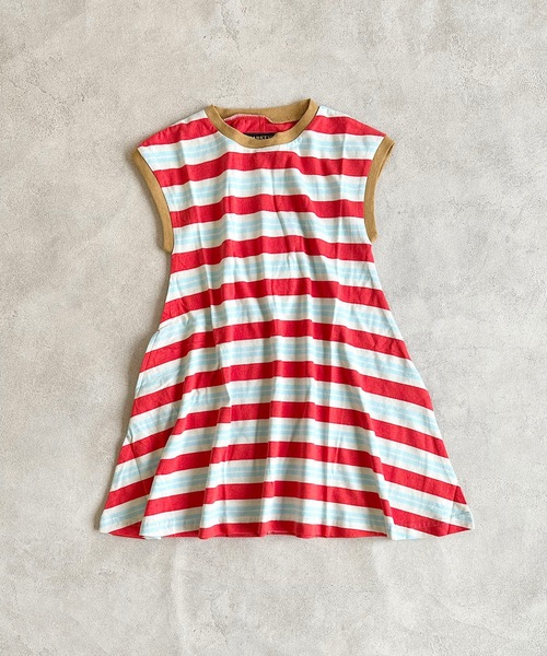 【BIG FIELD】ふんわりフレアシルエット♪肌触りのいい薄手の柔らかい生地感。幅と太さが絶妙にデザインされたボーダーデザイン♪マルチボーダーの配色も目を引きます。首元と袖口のリブ配色もたまりません。。。1枚でサッと着られるワンピースは夏に重宝します。アクティブ時はパンツやレギンスと合わせるのも◎動くとふんわり動きのあるガーリーワンピースです♪■同デザインのTシャツもございます!ボーダーカラーTシャツ:0000341132◆右側に1か所ポケット付き