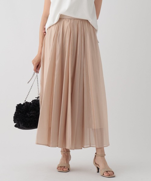 シンプルなアイテムと合わせてレディな雰囲気にアップデート ーーー 軽やかで透ける素材感はTシャツとのワンツーコーデも華やかに見せてくれます。 エレガントにもカジュアルにもスタイリング次第で着回し自在。 【素材】 ・上品なツヤ感で高見え効果 ・ほどよいシア素材で軽やかな印象 【悩みに“効く”ポイント】 ・シンプルなTシャツも華やかに見せてくれてスタイリングに悩まない ・エレガントにもカジュアルにも着こなし自在