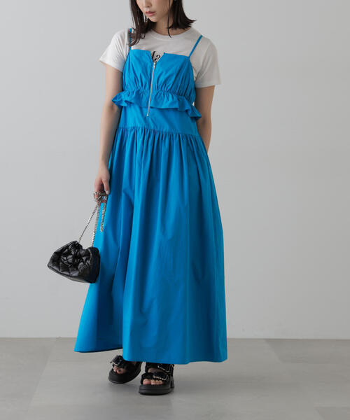 〔fabric&design〕水洗いをした硬くないコットンタイプライターの生地を使った夏らしいキャミワンピース。ウエストラインを高い位置に設定したペプラムデザインで、フロントZIPでカジュアルさをプラスしました。後ろバスト部分はゴム仕様にしており、さらに紐で加減を調整していただけます。また裏地付きですので、透ける心配なく着用できます。〔styling〕1枚でさらっとサマードレスとして着ていただくのがおススメですが、インナーにノースリTシャツとレイヤードさせたスタイリングもおススメです。■透け感:なし■生地の厚さ:普通■裏地:あり■伸縮性:なし■光沢:なし■シルエット:スタンダードmodel:骨格ウェーブ---------------------------------------------------◆商品のお気に入り登録◆お気に入りアイテムの値下げ・再入荷・在庫1点などの通知を受け取ることができます。◆ブランドのお気に入り登録◆新商品や再入荷、セール、クーポン配布などお得な情報を受け取ることができます。---------------------------------------------------※ご注文いただいた予約商品のお届け時期の確認は、注文履歴ページより行えます。