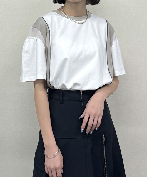 透け感のあるシアーのドッキングがトレンドの配色デザインTシャツ袖にはギャザーを寄せており女性らしさを引き立てます。デザイン性がありつつ、シンプルな配色なので、カジュアルにもキレイめにも幅広く着て頂けます。ゆるシルエットで着心地も抜群。ロングスカートを合わせて、大人カジュアルに着て頂くのがおすすめです。☆★お買い物をお楽しみいただく為に★☆★商品のお気に入り登録完売カラーの再入荷通知や、ラスト1点の通知、セールの通知も受け取ることができます。★ブランドのお気に入り登録新商品や再入荷等、ブランドのお得な情報をいち早く受け取ることができます。