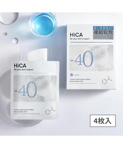 【HiCA】HiCAは「Be your skin’s expert」をテーマに成分の効果や濃度に着目した商品開発を進めるスキンケアブランドです。【フリーズドライ】 -40℃で凍結乾燥させるフリーズドライ製法で美容液成分を濃縮した新感覚のシートマスク。ナイアシンアミドを22%も配合した濃密マスクが、うるおって輝きのある印象の肌へ導きます。【特徴】使う直前に水を加えて10秒待つと、濃縮美容液成分が溢れ出す濃厚テクスチャーのマスクに変身。【敏感肌にもおすすめ】フリーズドライ技術により防腐剤無添加を実現。エタノール、オイル、香料、着色料も無添加。パッチテスト済。【内容量】1枚×4袋入【使用上の注意】お肌に異常が生じていないかよく注意して使用してください。化粧品がお肌に合わないときは、使用を中止してください。----------------------------------------------------お気に入り登録【♥】がおすすめです!☆COSME DELiの情報をいち早くゲット☆----------------------------------------------------【♥】アイテムをお気に入りに追加すると…⇒ 完売アイテムの 再入荷 /在庫残りわずか/セールなどをお知らせ!【♥】ショップ・ブランドをお気に入りすると…⇒新商品 / 再入荷 / クーポン/セールなど ショップ・ブランドの最新情報をお届け! ----------------------------------------------------