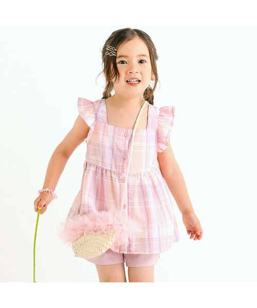 チェック柄のチュニックがパッと目を引くセットアップ。 サッカー生地を使用しているので通気性がよく、さわやかな着心地でキッズもニコニコ。 肩のフリルがとってもキュート! ボトムの裾にあしらったリボンはチュニックと同じ生地を使用していてさりげなくリンクしているのがオシャレ◎ ウエストはゴム仕様になっていてお着替えしやすくキッズもニッコリ。 合わせやすいデザインになっていて、セットでも上下それぞれの単品使いでもスタイリングしやすいから、コーディネートの幅がグーンと広がる1着です。 付属品がないのでお手入れしやすいのはみんながうれしいポイント。 夏のデイリー使いからお出かけまで活躍する優秀なアイテムです。 女の子らしいピンクと夏らしいさわやかなグリーン系の2色展開です。 ※右後ろポケットあり ※柄の出方は生地の裁断により一点一点異なります。 ※モデル画像はライトを当てて撮影しているため、実際の商品カラーと差異がございます。 2024年春夏女の子アイテム。 【SLAP SLIP(スラップ スリップ)】 ~子どもの欲しいをカタチに~ ヨーロッパのこどものように 子どもらしい今しか着れないナチュラルなかわいさを提案 どこか上品で清楚感漂うフレンチカジュアルは いつものコーディネートをさりげなく格上げ