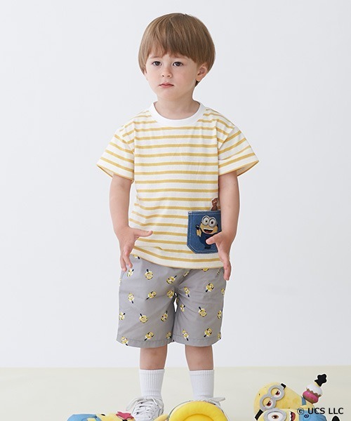 さまざまなミニオンをアソートした可愛らしいハーフパンツです。 総柄には新作映画のアート、刺しゅうには定番のデフォルメされたアートをほどこしました。 やわらかな肌触りの綿素材を使用し、快適なはき心地を実現。 ズボンの内側には、アジャスターゴムがついており、簡単にフィット感を調節可能です。 内側にお名前を記入できるタグつき。 【おすすめの着用時期は春夏シーズン】 【透け感】透けない 【生地の厚さ】普通 【伸縮性】なし 【裏地】なし 【ポケット】あり 【アジャスター】あり