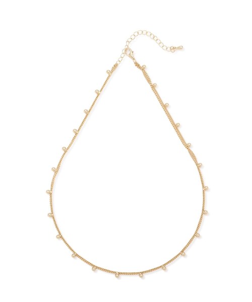 均等に配置されたボールパーツがキャッチーな2連チェーンネックレス。ほどよい存在感のあるデザインで、首元のアクセントにぴったりです。キレイめ通勤オフィススタイルにも、休日のお出かけコーデにも合わせていただけるアクセサリーです。