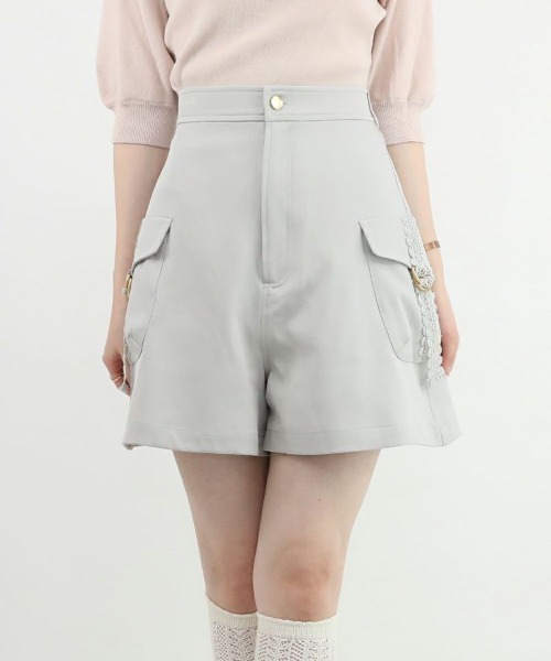 トレンドライクなワークデザインにレースのガーリーさをMIXしたショートパンツ。 繊細なレースをテープ使いした大きなアウトポケットがキャッチーなポイント! 裾が広がったデザインなので、スカートのような女の子らしいシルエットで着用していただけます♪ ガーリーなブラウスと合わせてトレンドMIXな着こなしを楽しんで ====== ポケット:アウトポケットあり ファスナー:フロントファスナーあり ウエストゴム:背中部分のみあり 裏地:あり 生地感:ふつう 透け感:なし ====== ▼商品のお気に入り登録▼気になるアイテムの♡をクリックしてお気に入り登録すると残り1点の通知、完売カラーアイテム再入荷の通知、お得な通知が届きます。 ▼ショップお気に入り登録▼ ショップからの新作商品やお得なイベント情報など、いち早くブランドからの情報を受け取ることができます。 ▼Fint/フィント 50~70年代のクラシカルなヴィンテージデザインに トレンド感をプラスしたレトロ&ガーリースタイルをお届け。 古着屋で一点ものを見つけるような【ときめき】を感じられるブランドです。 70s~90sストリートからイメージしたアイテムにレトロ&ガーリー要素をMIXした トレンド感あるカジュアルアイテムが揃う「Pink Label」のアイテムも展開中!