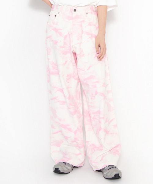 ピンクのタイダイ柄がコーデのアクセントに☆ルーズシルエットなトップスとはもちろん、クロップド丈トップスに合わせるのもおすすめです♪ヒップのラインを拾いずらく体系カバーにも◎【仕様】ファイブポケット、ZIPフライ、ベルトループ、ワイドシルエット【取り扱い注意事項】 ・濃色のアイテムは移染の恐れがあるため別洗いにし、アテンションタグ、洗濯表示を必ずご確認の上ご使用下さい。【商品画像について】・画像はサンプルです。お使いのモニター環境により実際の商品とお色味が異なったり、仕様やサイズが若干異なる場合がございます。予めご了承ください。★《お気に入り登録》でお得な情報がいっぱい★・「商品のお気に入り登録」で再入荷通知や、ラスト1点の通知、セール通知も受け取ることができます。・「ブランドのお気に入り登録」で新商品や再入荷など、いち早くブランドのお得な情報を受け取ることができます。
