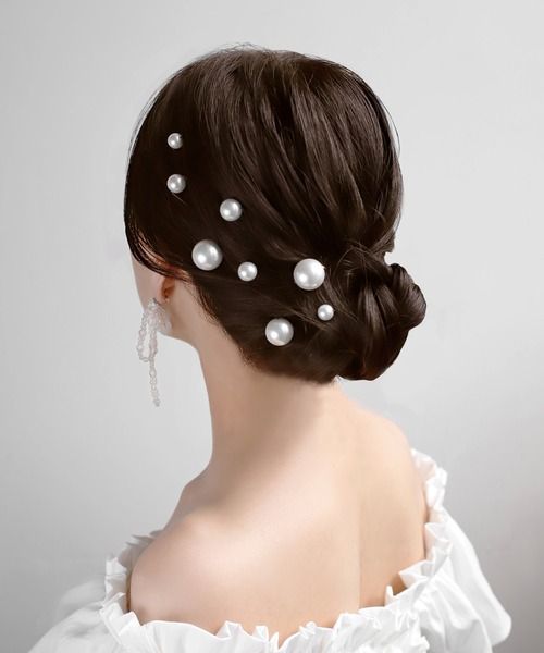 時代と共に多様化してきた結婚式のスタイル。 どれを選んでも大切な時間であることに変わりはありません。 どこから見ても華やかに仕上げたアネモネの”Hanayome”シリーズは、 晴れの日のあなたに寄り添うそんな存在になってほしいと心を込めたアクセサリーたち。 パールが柔らかな艶めきを放ち、うしろ姿を上品に仕上げるUピン。 12本セットなので、差し込む位置や本数によって幅広いアレンジが楽しめます。 ※ATTENTION※ ■微細なキズや製造ムラはすべての商品に含まれます。