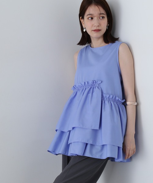 アシンメトリーなフリルディテールが夏に着映えるノースリーブブラウス。裾まわりでふんわりと広がる立体感のあるシルエットは、リラックスした雰囲気がありながらも、キレイめな印象で着ていただけるデザインです。後ろネックはスリット開き&ボタン留め仕様。パンツとのコーディネートがお勧めです。**********************透け感:ややあり裏地:なし伸縮性:なし光沢感:なし生地の厚さ:薄手**********************【スタッフ着用コメント】身長:160cm/体型:普通/普段サイズ:M/着用サイズ:M160cmの身長で、ヒップ下までしっかり隠れる丈感なので体型カバーに◎オフは透け感があるのでインナー必須ですが、程よくハリ感のある生地で、フリルがふんわり広がるとても綺麗なシルエットです♪すっきりとしたパンツと合わせると、バランスよく着られそうです!●取り扱いについては、商品についている品質表示でご確認ください。●撮影はサンプル商品で行っている為、仕様とサイズが異なる場合がございます。●スタジオ及び屋外で撮影した着用画像は、光の当たり具合やご覧のモニターによって色味が違って見える場合があります。予めご了承ください。●生産時期により色・素材・サイズ感など多少異なる場合がございます。予めご了承ください。≪お買い物をよりお楽しみいただくために≫・「商品のお気に入り登録」再入荷通知や、ラストの通知、セール通知も受け取ることができます。・「ブランドのお気に入り登録」新商品や再入荷など、お得な情報を受け取ることができます。