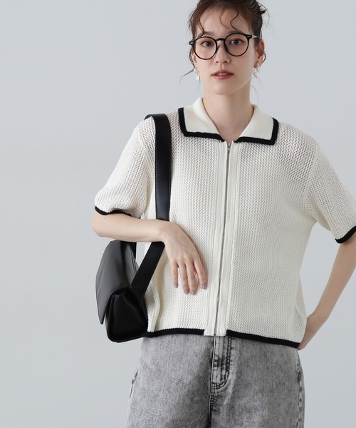 涼しげな印象で着られるメッシュポロ襟ニットカーディガン。襟、袖口、裾まわりに入れた配色ラインがアクセントになっています。前立てのファスナーを開けて羽織りとしても、お持ちのインナーを中に合わせていただきプルオーバー風にも着られます。**********************透け感:なし裏地:なし伸縮性:ややあり光沢感:なし生地の厚さ:普通**********************●取り扱いについては、商品についている品質表示でご確認ください。●撮影はサンプル商品で行っている為、仕様とサイズが異なる場合がございます。●スタジオ及び屋外で撮影した着用画像は、光の当たり具合やご覧のモニターによって色味が違って見える場合があります。予めご了承ください。●生産時期により色・素材・サイズ感など多少異なる場合がございます。予めご了承ください。≪お買い物をよりお楽しみいただくために≫・「商品のお気に入り登録」再入荷通知や、ラストの通知、セール通知も受け取ることができます。・「ブランドのお気に入り登録」新商品や再入荷など、お得な情報を受け取ることができます。