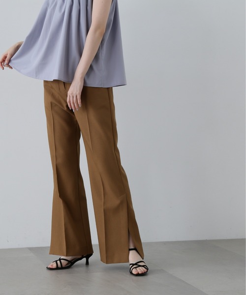 脚のラインをキレイに演出してくれるサイドベントフレアパンツ。サイドベントが深めに入っていたり、センタープレスが施されているので、よりフレアシルエットが引き立つデザインです。ウエストベルト部分はすっきり切り替え、Tシャツやシンプルなトップスインも品よく決まる仕様に。チュニック丈のブラウスをアウトスタイルで合わせてきただくコーディネートもお勧めです。**********************透け感:なし裏地:なし伸縮性:なし光沢感:なし生地の厚さ:普通**********************【スタッフ着用コメント】身長:160cm/体型:普通/普段サイズ:M/着用サイズ:M160㎝の身長で、少し足の甲にかかるくらいの丈感でした。センタープレスや程よいフレアシルエットで、脚のラインがとっても綺麗に見えます!!歩くたびにサイドベントが揺れて、抜け感があっておしゃれです♪どんなトップスにも合わせやすいので、たくさん着回しできそうです!●取り扱いについては、商品についている品質表示でご確認ください。●撮影はサンプル商品で行っている為、仕様とサイズが異なる場合がございます。●スタジオ及び屋外で撮影した着用画像は、光の当たり具合やご覧のモニターによって色味が違って見える場合があります。予めご了承ください。●生産時期により色・素材・サイズ感など多少異なる場合がございます。予めご了承ください。≪お買い物をよりお楽しみいただくために≫・「商品のお気に入り登録」再入荷通知や、ラストの通知、セール通知も受け取ることができます。・「ブランドのお気に入り登録」新商品や再入荷など、お得な情報を受け取ることができます。