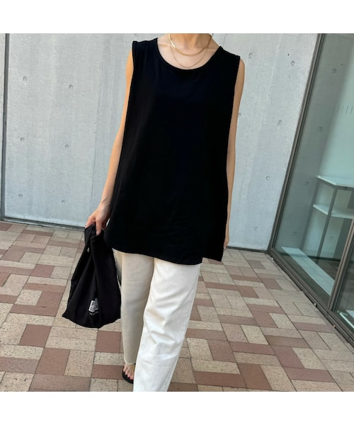 縦のシルエットでスタイルアップできるノースリーブ。 大人っぽくスタイリッシュな印象で着回しやすいシンプルデザイン♩ 裾はフロントがラウンドデザイン、バック部分はスクエアデザインで簡単にレイヤードスタイルが完成! 絶妙な丈感でレイヤードスタイルが楽しめる、お洒落さん必須のアイテムです。 ※モデル身長:161cm ■クリックポストにて代引きをお選び頂いた方は、400円プラスさせていただき、宅配便の代引きにて発送させていただきますのでご了承下さい。 ■カラー ブラック ◾️サイズ 着丈75cm 胸囲100cm ※多少の誤差は予めご了承下さい。 ■素材 ポリエステル65% 綿35%