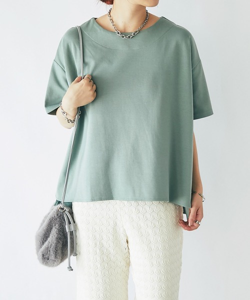スッキリ見せ+キレイ見せ 商品ポイント ・着用したときのシルエットがスッキリきまる どんな骨格の方でもキレイが叶う設計の万能トップス ・サラッとした肌触りで、Tシャツ感覚で着られる◎ ・肌離れするサイジングと二の腕が隠れるシルエットで、体型カバーが叶う おすすめコーディネート Iラインのスカートや、すっきりとしたパンツとのスタイリングがオススメ ジャンスカやキャミワンピのインナーにも是非◎ ロングシーズン着回しに使えます おすすめスタイリングアイテム デニムジャンスカ コットンボイルシャツワンピース 【WEB限定】先染めチェックフレアスカート ストレートフレアデニム 素材 綿85% ポリエステル15% 洗濯方法:洗濯機洗い(弱) 透け感:ややあり 裏地:なし 伸縮性:あり 生地の厚さ:普通 光沢:なし ポケット:なし 《Q&A》 Q1:透け感はありますか?下に何か着た方がいいのでしょうか? どのカラーもあまり透け感は気になりませんが、インナーにタンクトップやキャミソールがあると安心です。 Q2:お洒落に体型カバーできるトップスが欲しい… 身幅・袖周りはゆったり、サイドにスリットが入っていて、 前後高低差のある身頃が体型カバーには最適です。 Q3:季節的にはいつ頃まで着られますか? オールシーズン着ていただけます。 冬にはインナーにタートルネックのシアーニットを重ねて 季節によって1枚着でも使えて便利です。 【スタッフ着用コメント】 《RINO》 身長:148cm/着用サイズ:F 体型:普通/骨格:ストレート/パーソナルカラー :ブルベ冬 コンパクトなシルエットのカットソー♡ バックの首元に入った切り込みがポイントに 《KAREN》 身長:162cm/着用サイズ:F 体型:普通/骨格:ストレート/パーソナルカラー :イエベ春 デイリーに着回せるカットソーです。 前後差のある着丈で後ろはヒップをカバーしてくれます◎ 《ゆうき》 身長:153cm/着用サイズ:F 体型:ぽっちゃり/骨格:ストレート/パーソナルカラー :イエベ春 気になるお腹もお尻もしっかりカバーできるカットソー。 首回りも詰まりすぎていないので安心です。 骨格タイプ ストレート:全体的に立体型で筋肉質。ひざ下はすらっと細め。ボディラインにメリハリがある。 ウェーブ:上半身が薄く、華奢。緩やかな曲線のボディライン。下半身に重心があり女性らしい体型。 ナチュラル:筋肉や脂肪があまり感じられない体型。腰の位置が高く骨や関節が目立ちやすい。 -------------------------------------------------------------------------------- 【注意点】 ※画像の商品は光の照射や角度、お使いのモニター環境により、 実物と色味が異なる場合がございます。あらかじめご了承下さいませ。 -------------------------------------------------------------------------------- 【『♡』をクリックでお気に入り登録】 ・ラスト1点や再入荷の通知が届きます。 --------------------------------------------------------------------------------