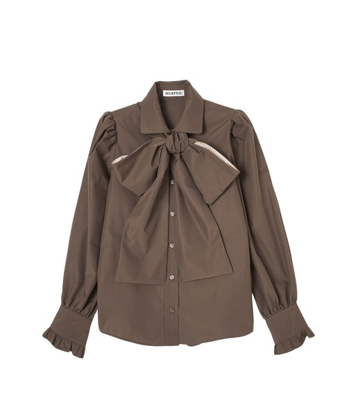 《お気に入り登録》のオススメ!▼商品のお気に入り登録再入荷通知や、残り1点の通知、セールなどの通知も受け取ることができます。▼ブランドのお気に入り登録新商品や再入荷など、ショップのおすすめトピックスなどお得な情報をいち早く受け取ることができます。胸元のリボンがコーデのポイントに色んな着方で楽しめる長袖シャツ■ハリ感と光沢感のある風合いのブラウス■袖口のボリューム感でガーリーな印象に♪■ギンガムチェックのボウタイは、リボン結びやボウタイ結びなど様々な着こなしを楽しめます■また、リボンは取り外し可能なのでその日の気分に合わせてコーディネート可能○【スタイリング提案】ロングスカートやミニボトム合わせでガーリーに決めたい時はリボン結び、スラックスやワイドパンツ合わせでスッキリ見せたい時はタイを外しても○スタイルによって変化を付けられるアイテムは1枚持っておくと便利です!・透け感:なし・伸縮性:なし・生地の厚さ:普通・裏地:なし・シルエット:ベーシック※袖丈はフリル含まない【MILKFED.(ミルクフェド)】【取り扱い注意事項】・アテンションタグ・洗濯表示を必ずご確認の上、ご使用下さい。※画像の商品は光の照射や角度により、実物と色味が異なる場合がございます。また表示のサイズ感と実物は若干異なる場合もございますので、予めご了承ください。※商品の色味の目安は、商品単体の画像をご参照ください。※画像の商品はサンプルとなります。実際の商品と色味、仕様、加工、サイズ、素材等が若干異なる場合がございます。※予約商品など一部商品につきましては、生産の都合上、お届け時期が前後する場合がございます。