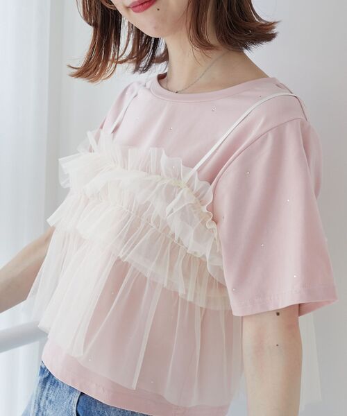 今シーズン注目!小さなビジューがポイントのTシャツが登場。■デザインシルバーのラインストーンが華やかさを演出し、フェミニンムード高まるクルーネックTシャツ。ランダムにつけられたラインストーンがキラキラと光り、アクセサリー無しで決まる優秀アイテム。■サイズ感5分袖のコンパクトで着やすいシルエット。着丈は長すぎない丈感なので、ボトムにインせずにそのまま着てもバランスよく決まります。※ネックポイントからの着丈:45.5cm■スタイリングシンプルなデザインなのでフェミニンコーデからカジュアルコーデまで、幅広いスタイリングにおすすめです。デニムビスチェのインナーとして使っても可愛い!・・・・・・・・・・・・・・・・・・・・・・透け感:ややあり(アイボリー)裏地:なし伸縮性:あり光沢感:なし生地の厚さ:普通・・・・・・・・・・・・・・・・・・・・・・■商品のお気に入り登録 再入荷通知やのこりわずか、お得なプライスダウンの情報も受け取ることができます。ぜひご登録ください◎※サンプルでの撮影の為、製品と仕様が異なる場合がございます。