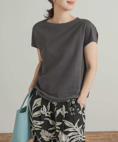 落ち感のあるサカリバー生地を使用した大人カジュアルなプルオーバーをご用意しました。 膨らみはありながらも軽くドライタッチな着心地がこれからの季節にも着やすく、肌離れの良いゆるいシルエットも快適に着られるポイント。 襟元はボートネックのデザインに、袖もフレンチスリーブにすることでスッキリとした印象になり、着崩れを解消してくれます。 風合いのあるコットンリネンが着込むほどにくたっとし、雰囲気のあるスタイリングを演出してくれるアイテムです。 【2024 Spring/Summer】【24SS】 ※麻は水に濡れると縮みやすく、また水洗いは毛羽立ちや風合いの変化の原因ともなりますのでお避けください。 ※雨に濡れた場合は、早めに乾いたタオルで水気を取った後、シワを伸ばして形を整えて、陰干ししてください。 ※その他お取り扱いに関しましては、商品に付属のアテンションタグをご覧ください。 ※商品画像は、光の当たり具合やパソコンなどの閲覧環境により、実際の色味と異なって見える場合がございます。予めご了承ください。 ※商品の色味の目安は、商品単体の画像をご参照ください。 ▼お気に入り登録のおすすめ▼ お気に入り登録商品は、マイページにて現在の価格情報や在庫状況の確認が可能です。 お買い物リストの管理に是非ご利用下さい。 素材感 透け感 : ややあり(NATURALのみ) 伸縮性 : あり 裏地 : なし 光沢 : なし ポケット : なし M