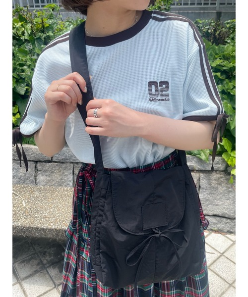 使いやすさ満点◎ お出かけに常に連れて行きたくなる万能ショルダー ■detail&coordinate トレンドのリボンモチーフが目を惹くショルダーは カジュアルとガーリーを併せ持つ万能アイテム。 さらっとしたナイロン素材なので軽く、 気軽に持てるのでアウトドアにもおすすめです。 コンパクトなサイズ感ながらもマチ付きで大容量、 そして内側にはジップつきのポケットも付いているので リップやヘアアクセなどの小物の収納も◎ 【WC ZOZOTOWN お買い物ガイド】 ▼商品のお気に入り登録 商品ページやブランドTOPの♡をクリックするだけ◎ 再入荷通知や、ラスト1点の通知、セールの通知をすぐに受け取れます。 【商品画像について】 ・画像はサンプルです。実際の商品と仕様、加工、サイズ、カラーが若干異なる場合がございます。 ・撮影場所や照明の照射・角度、お使いのモニター環境によりお色味が異なる場合がございます。予めご了承ください。 【取り扱い注意事項】 ・素材の特性上、水や汗で濡れたまま長時間放置することはお避け下さい。 ・濃色のアイテムは移染の恐れがあるため別洗いにしてください。 ・アテンションタグを必ずご確認の上、ご使用下さい。 ・生地の素材上、においが気になる場合がございます。その際は陰干しして頂くと、ほとんど感じられなくなります。 【サイズ表記について】 ・表記しているサイズは、すべてスタッフが採寸した実寸値になっております。 ・正確なサイズを測るよう心掛けておりますが、採寸用サンプルの実寸値となりますので、 お届けする商品と表記寸法の間に多少の誤差が生じる場合がございます。 ・商品により±2cm程度サイズに誤差がある場合がございますので、予めご了承ください。