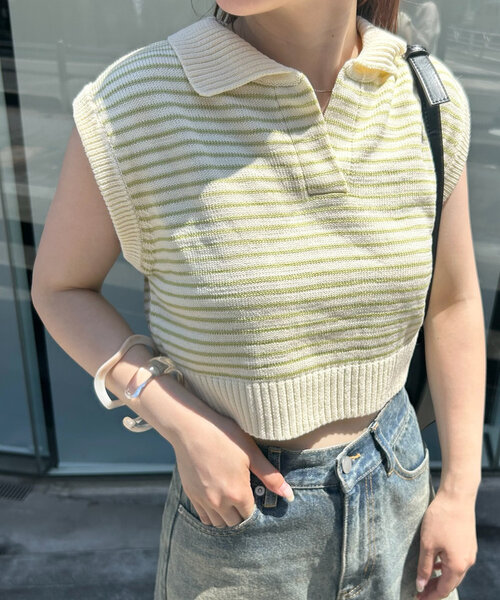 ![mline(エムライン)の「[mline]バックロゴボーダーノースリニット(ベスト・レディース・グリーン/ブラック/アイボリー・FREE)」の1枚目の写真](https://c.imgz.jp/030/85427030/85427030_35_d_500.jpg)