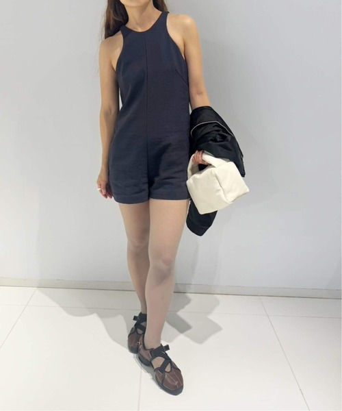 【24SS COLLECTION】 EDIT. FOR LULU夏らしいオールインワン。ショート丈、ヘルシーなアームホールラインが今年らしいポイント。麻のハリ感とポリエステルのハリ感が絶妙に合わさった素材でシワにもなりづらいのが特長。3本撚りという珍しい撚り方をした麻の糸を使用。麻混でもカジュアル過ぎず、上品な印象。**********************透け感:なし裏地:なしパッド:なし伸縮性:なし光沢感:なし生地の厚さ:厚め**********************【スタッフ着用コメント】身長161cmサイズ感:窮屈感はなく、肌から離れる感じ。素材感:麻混ですが、麻特有のごわつきなし。柔らかくてとろっとした素材感。着用感:裏地がなくてもいたくない。大胆な露出があるが、生地に厚みとカジュアル感があるのでセクシーにならない【スタッフ着用コメント】身長156cmサイズ感:しめつけ感がなくゆとりがある。丈は短めだが太ももが程よく隠れる。素材感:麻混だが直接肌に触れてもチクチク感などはなく、柔らかいので夏にもさらっと着れる。着用感:とても楽なので夏は1枚で着たい。今の時期は軽めの羽織を合わせています。**********************※取り扱いについては、商品についている品質表示でご確認ください。※照明の関係により、実際よりも色味が違って見える場合があります。またパソコン・スマートフォンなどの環境により、若干製品と画像のカラーが異なる場合もございます。※商品の色味は、商品アップ画像をご参照ください。<気になったアイテムは『お気に入り』がおすすめです!>お気に入り登録した商品の再入荷・在庫情報・値下げなどの通知を受け取ることができます。モデルサイズ:身長:167cm 着用サイズ:フリー本体:手洗い可能