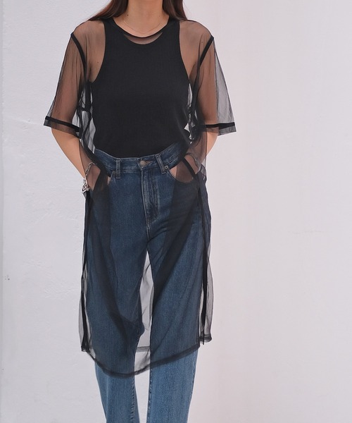 スタイリングの幅が広がるシンプルな優秀シースルートップス レイヤード次第でオールシーズン着回しできるプラスワンブラウス。 トレンドライクなチュールの透け感とあえて綿テープでエッジをプラス。 サイドに入れたスリットでボリューム感のあるボトムスなどとレイヤードしてもすっきりと着こなせます。 腰辺りにもスリットを施すことでボトムスやワンピースのポケットに手を入れられるようにデザインしたのもこだわりポイントの一つ。 いつものスタイリングに取り入れるだけで、クラスアップしてくれる一枚です。 カジュアルなスニーカー合わせのスタイリングもおすすめ。 --------------------------------- 透け感:あり 裏地:なし 伸縮性:あり 光沢感:なし 生地の厚さ:薄め --------------------------------- ▼お取り扱い上の注意 ※お手入れの際は商品の縫込みネーム・アテンションを必ずご確認ください。 家庭洗濯〇(40℃限度。手洗いのみ) 漂白× タンブル乾燥× 日陰での吊り干し アイロン〇(中温150℃まで) ドライクリーニング〇(弱い処理。石油系溶剤) ウェットクリーニング〇(非常に弱い処理) ・洗濯時、ネットを使用して下さい。 ・蛍光増白剤が入っていない洗剤を使用して下さい。 ・形をととのえてから干して下さい。 ・アイロン時はあて布をして下さい。 ・この製品は、洗濯の際、多少の色落ちします。他のものと別に洗って下さい。 ・多少縮むことがあります。 粗い組織のものや、裏面に凸凹があって,ルーズな組織のもの、表面に糸が浮き出ているものはちょっとした不注意から引っかけてしまいがちです。 取扱いの際は取扱い絵表示確認の上十分注意して下さい。 ・着用時にベルト、バックや周囲の壁など、表面の粗いものとの引っかかりに注意して下さい。 ・洗濯の際には他のものとの引っかかりに注意して下さい。 ・指輪・時計・ネックレスなどは、ほつれ糸の原因になりますので、着用後にお付けすることをおすすめします。