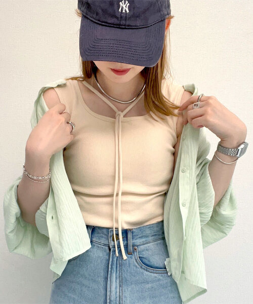 インナーレスでバストメイクしてくれる便利なカップ付きタンク。スクエアネックが首元をすっきりと見せてくれホルターネックでアクセントを効かせた一枚。 アクセいらずでデコルテを美しく演出し、ストラップのアレンジ次第で表情の違いも楽しめます。 【素材・サイズ感】 やさしい肌触りのコットンリブ素材。 締め付け感がなく身体のラインが強調されない程よいゆとり感。 デザイン性がある一枚なのでメイントップスとしてもインナー使いにもバリエーション豊富に着まわせるキャミトップスです。 多彩なカラー展開、M/Lサイズからお選びいただけます◎ 【STAFFコメント】 下着いらずでマルチウェイに使えるカップインナータンクトップ。 前後2wayのカップ付きキャミソールで、取り外し可能なパットは前後どちらにも取り付けることが可能です。 ストラップはクロスデザインにしたり、リボン結びにしたり、首に巻いて垂らしてチョーカー風にもアレンジできます。 ノースリーブカットソーなので1枚での着用はもちろん、ジャケットやカーディガン、 キャミワンピースのレイヤードインナーとしても活躍します。 Tシャツやスウェット、ニットから紐を見せるスタイルもおすすめで、春夏秋冬のオールシーズン着回し力抜群のブラトップです。 《KOBE LETTUCE ー神戸レタスー》 プチプラレディースファッションからコスメまで、トレンドアイテムを豊富に取り揃えております。 毎シーズン発売されるインフルエンサーとのコラボ商品はSNSでも話題に。