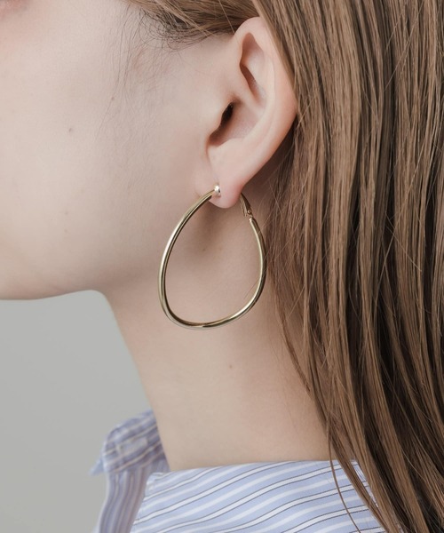 【存在感放つオーバルフープ】●角度によって見え方が異なる個性派フープ●存在感あるデザインでコーデのアクセントに●おおぶりシルエットで小顔効果も顔周りを一気に華やかにしてくれる、おおぶりイヤリング。定番のフープイヤリングとは異なり絶妙なカーブを描いているので、角度によって見え方が変化するのも魅力。やわらかいゴールドのカラーを採用し、存在感は放ちつつもハードに見えない大人なデザインに仕上がっています。【2024 Autumn/Winter】【24AW】※メッキ製品(特に銀メッキ)は変色しやすいため、こまめなお手入れで防止してください。長期放置やスプレー香料などの同時使用は、特にお避けください。※メッキ製品は、アレルギー体質の方や体調が低下している方など、かぶれることがあります。肌に異常を感じた時はご使用をお止めいただき専門医にご相談ください。※アクセサリーは壊れやすいものです。取り扱いに注意していただき大切にご使用いただけるようお願い申し上げます。重量(片耳) : 約5.5g※商品画像は、光の当たり具合やパソコンなどの閲覧環境により、実際の色味と異なって見える場合がございます。予めご了承ください。※商品の色味の目安は、商品単体の画像をご参照ください。▼お気に入り登録のおすすめ▼お気に入り登録商品は、マイページにて現在の価格情報や在庫状況の確認が可能です。お買い物リストの管理に是非ご利用ください。