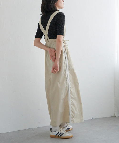 サイドライン&ウエストのドロストコードでスポーティーMIXに仕上げたジャンパースカート。 インナーで雰囲気を変えながら楽しめます。 【デザイン】 トレンドのナイロン素材。 深めのVネックですっきり着用できます。 【おすすめコーディネート】 インナー次第でオールシーズン使えるのが魅力です。 カジュアルなトップスからフェミニンなブラウスまで似合う一枚。 [洗濯方法]洗濯の際はネットを使用してください ★Instagramにて近日発売予定のアイテムやルックをご紹介しております。 @vence_sharestyle ★《お気に入り登録》でお得な情報がいっぱい★ ・「商品のお気に入り登録」で再入荷通知や、ラスト1点の通知、セール通知も受け取ることができます。 ・「ブランドのお気に入り登録」で新商品や再入荷など、お得な情報を受け取ることができます! ※商品の色味は、撮影場所や光のあたり具合などにより色味が違って見える場合がございます。また、お客様のお使いのモニター環境などにより色味が違って見える場合がございます。予めご了承の上ご注文下さい。 ※他のキャンペーンにより、期間中に価格が変動する場合があります。 ※セールは予告なく終了させていただく場合もあります。 [クリーニング] 手洗い可、ドライクリーニング可(F)、ウェットクリーニング(W)