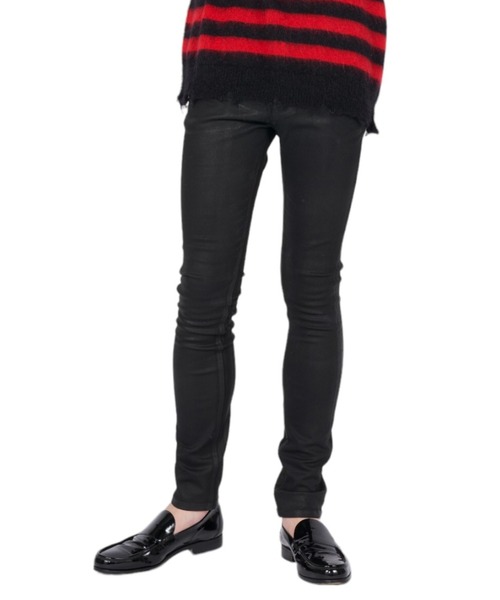 ・スリムフィット・ボタンフライ・5ポケット・ベルトループ付きウエストバンド・日本製
