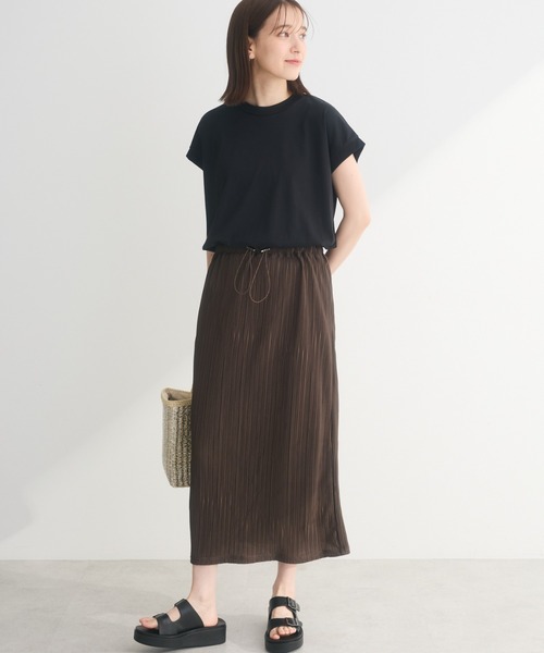 プリーツスカートをドッキングした異素材コンビのワンピース。トップスは爽やかなフレンチスリーブを採用し、華奢見せ効果も期待できます。ウエストゴム+ドロスト仕様で着心地もノンストレス◎細やかなプリーツ加工がシルエットもすっきりとキレイに見せてくれます。1着でもコーデが決まる忙しい大人女子にもうれしいアイテムです。透け感[無し]グレーベージュやや有り 裏地[無し] 伸縮性[有り] 光沢感[やや有り] 生地の厚さ[普通] 付属品[無し] ポケット[無し]●製品寸法:F:バスト54cm 着丈128cm 袖丈2.5cm 肩幅54cm ウエスト[ゴム仕様]74cm ヒップ100cm 裾幅53cm備考: