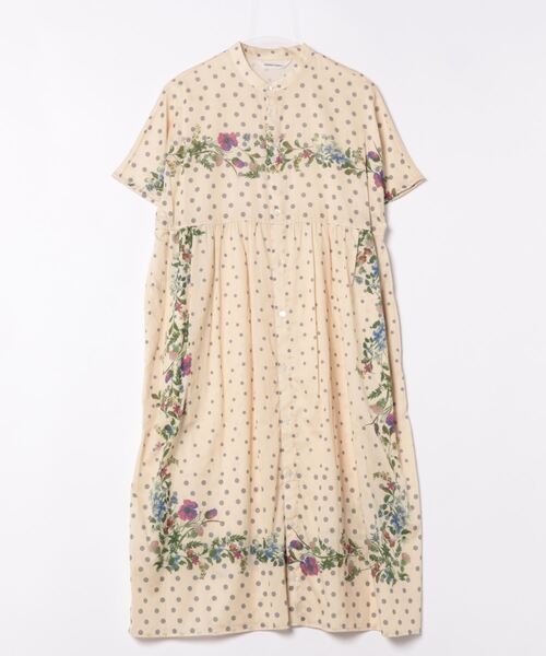 ふんわりとギャザーを施した身頃に涼し気な印象のフレンチスリーブワンピース。 コットンカルゼの光沢感がありドレッシーな素材をベースに、ランダムなドットとダイナミックに配置したパネル柄が印象的なテキスタイルです。 丈が長いアイテムにあると嬉しいポケット付き。 前を開けてロング羽織としても活躍します。 お手入れ:手洗い 店舗へお問い合わせの際は、下記の品番をお申し付け下さい。 [品番:34120043]