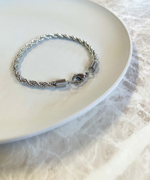シンプルでクールな印象を醸し出す、ロープチェーンブレスレット♪ボリューム感と丸みのあるチェーンは、手元をエレガントにスッキリと仕上げてくれます◎洗練感のあるルックスでありながらも存在感があり、オフィススタイルにはもちろん、カジュアルな装いにもピッタリのアイテムです◎※お肌にやさしく、錆びにも強いのが特徴のステンレス素材です。【16cm】長さ:約16cm , チェーン太さ:約3.5mm【18cm】長さ:約18cm , チェーン太さ:約3.5mm▼慎重に計測しておりますが、商品の材質や個体差で 誤差が出ることがございますのでご了承ください。