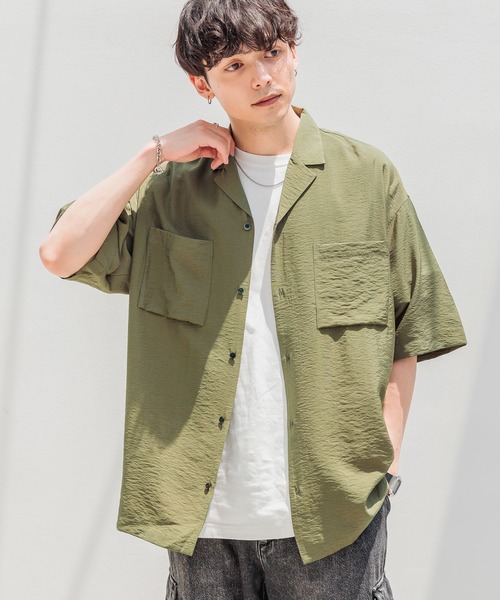 ーーー■ポイント・レーヨンとナイロンの混紡素材でできたテロっとした質感の開襟シャツ!・揺れ感/ドレープ感に優れ季節感UP!・シンプルだからこそシルエットやディテールにこだわり抜いた一着〇■デザイン・シルエット・ドレープ感のある素材感で仕上げた季節感のあるシャツ!・首元は開けた開襟仕様で夏でも涼し気な印象に〇・トレンド感溢れるルーズシルエット/オーバーサイズ・キレイなボックスシルエットで仕上げ、サラッと着ることができるディテールに〇・ユニセックスで使える可愛いデザイン!■素材ドレープ感や揺れ感のある夏らしい素材感で仕上げテロっとした質感が特徴〇サラッと羽織れる軽やかな生地で暑いシーズンでも快適にご着用いただけます!======■参考サイズM:~175cmL:175cm~======ーーー■スタイリングきれいめ・カジュアルスタイル両方と相性の良い着回し抜群の一着〇カーゴパンツやデニムパンツと合わせたラフなスタイルはもちろんショーツと合わせた季節感のあるスタイルもおすすめ!きれいなワイドパンツと合わせるとシンプルで上品なコーデの完成〇