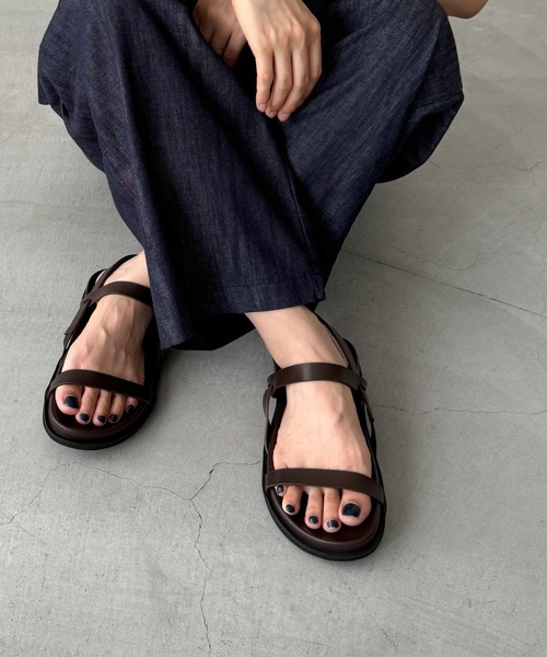 デザイン程良い抜け感を演出してくれるダブルストラップサンダル。フットベッドのインソールが足にフィットして安定感があり、歩きやすいのが嬉しいポイント。素材牛革を使用しているのでカジュアルになりすぎず、上品さをプラス。インソールは上質なフェイクレザーを使用しているのでお手入れが簡単です。コーディネートスラックスやデニムと合わせた大人カジュアルや、スカートやワンピースと合わせたフェミニンなコーデもおすすめです。El mar(エルマール)El mar はスペイン語で『海』海に向かうときはだれでもワクワクする。洋服を選ぶとき、袖を通すとき、同じように心が踊るアイテムを提案したい。そんな『ワクワク』な気持ちを込めて El mar はデビューしました。※天然皮革を使用しているため、多少の色ムラや生産過程で生じる傷が多少ある場合がございますので、予めご了承ください。※照明の関係により、実際よりも色味が違って見える場合があります。またパソコン・スマートフォンなどの環境により、若干製品と画像のカラーが異なる場合もございます。※商品の色味は、商品アップ画像をご参照ください。
